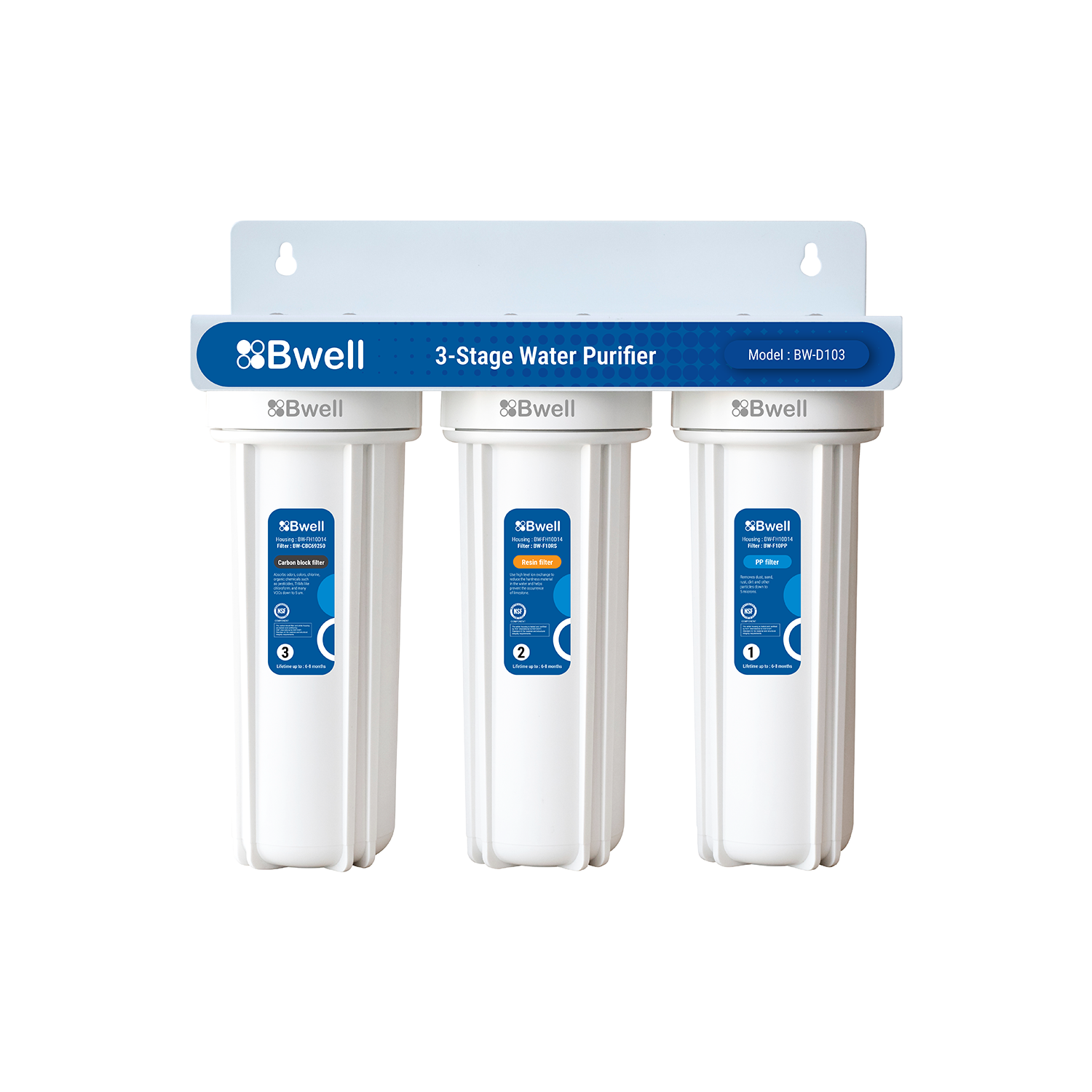 ● ขั้นตอนที่ 1 PP filter : กรองตะกอน ความขุ่น ดูดซับสี กลิ่น รส คลอรีน สารอินทรีย์ต่างๆ กรองละเอียด 5 ไมครอน ระยะเวลาการใช้งาน : 6 - 8 เดือน