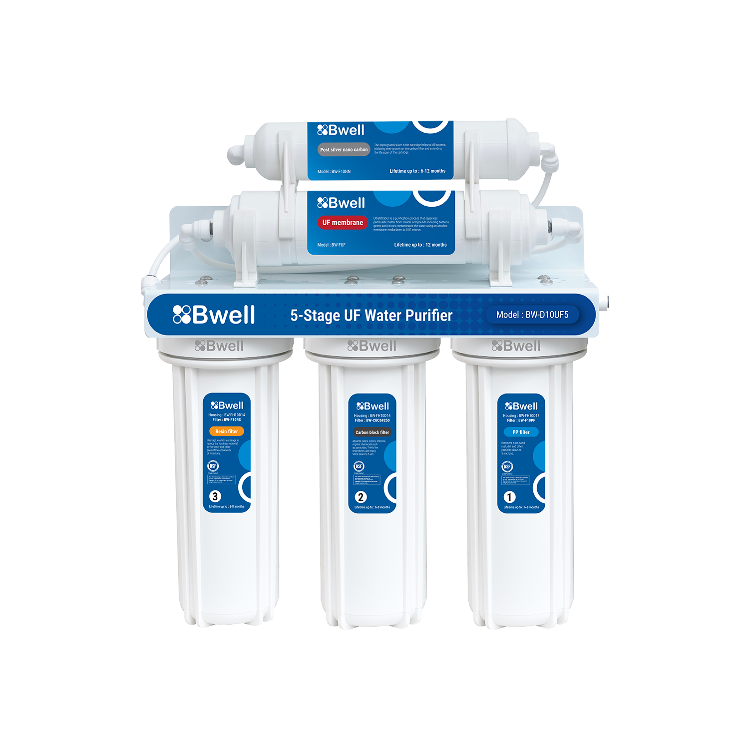● ขั้นตอนที่ 5 Post silver nano carbon : ช่วยฆ่าเชื้อแบคทีเรีย ยับยั้งการเจริญเติบโตบนไส้กรองคาร์บอน และยืดอายุการใช้งานของไส้กรอง ระยะเวลาการใช้งาน : 6 - 12 เดือน